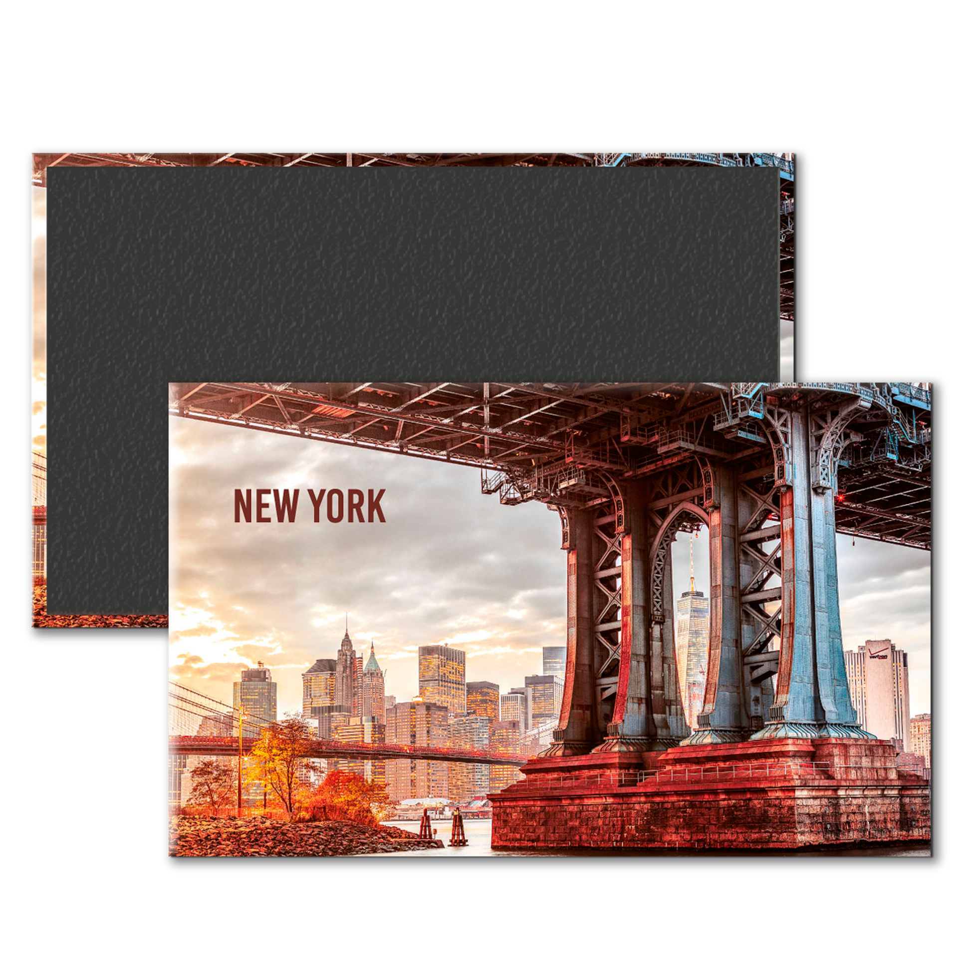 Subject: United States, USA, New York City, East River, Manhattan, Lower Manhattan, Manhattan Bridge, Manhattan Bridge pylon, Brooklyn Bridge and Freedom Tower in background at sunset